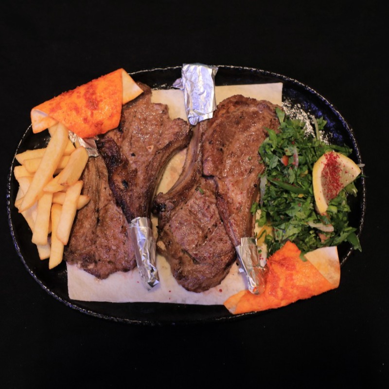 (422 سعرة حرارية)قطع لحم مشوية طرية بتتبيلة خاصة مكونات طبق التقديم / ثلاثة أسياخ لحم أوصال - بطاطس- بصل مشوى - سلطة بقدونس - قطعتين من خبز المحمرة بالصلصة - خبز الصاج- حبتين خبز عراقى
