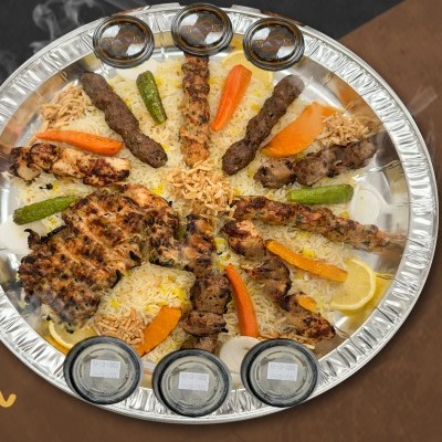 نصف دجاج على الفحم _ 8 أسياخ مشكل مشاوى _ رز _ 3 عصير من اختيارك